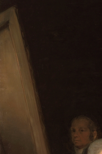 Nel buio, per non darsi troppa importanza e per non invadere il campo dei committenti, in quest’opera che doveva svolgere un compito ufficiale ed essere esposta a Palazzo per immortale la grandezza della famiglia reale, Goya lavora con la sua espressione più furba disegnata sul viso.