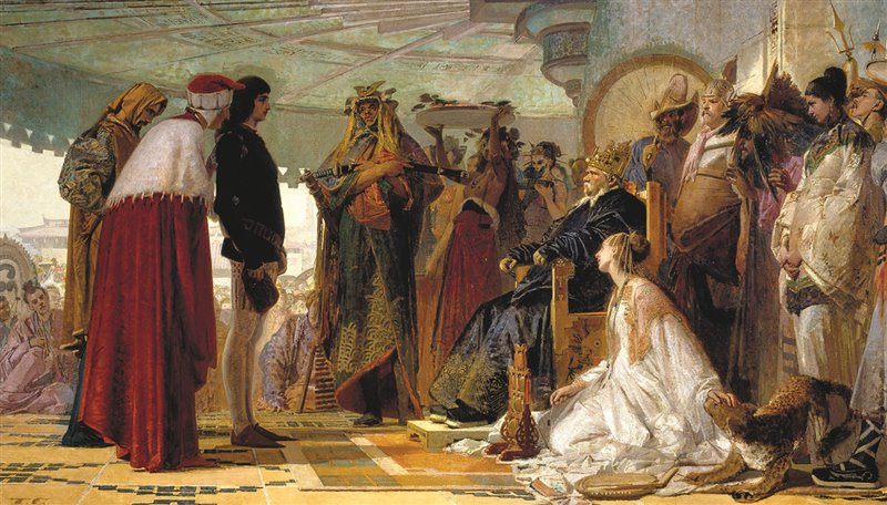 “i mercanti di sette nazioni convengono ad ogni solstizio ed equinozio, e dove a ogni parola che uno dice […] gli altri raccontano ognuno la sua storia.”