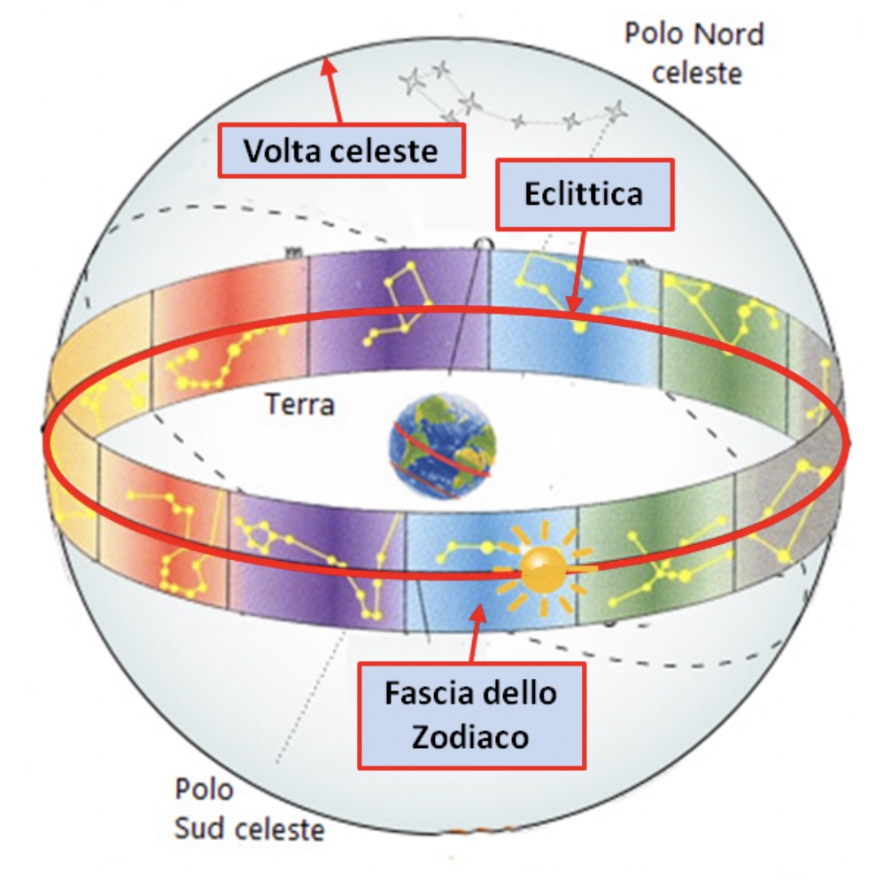Lo Zodiaco è quella fascia della volta celeste che si estende per 9° da entrambi i lati dell’eclittica. Nella fascia zodiacale sono state individuate 12 costellazioni, alle quali sono stati assegnati nomi di esseri viventi, reali o fantastici. Ciò spiega l’etimologia del nome, che deriva dal greco zòon, “animale, essere vivente” e hodòs, “strada, percorso”.