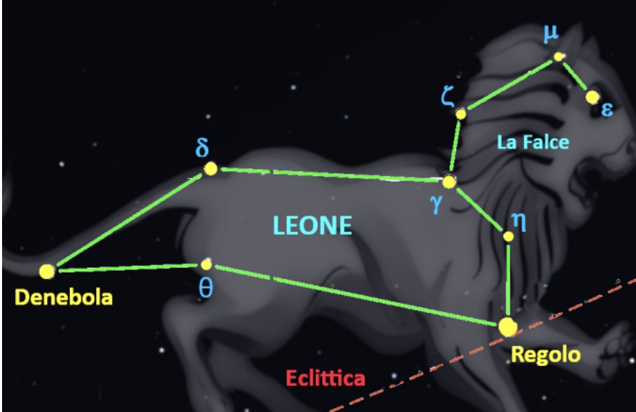 Il Leone è una estesa costellazione zodiacale le cui stelle principali formano un grande trapezio, al quale è connesso un famoso asterismo (gruppo di stelle), noto come La Falce.