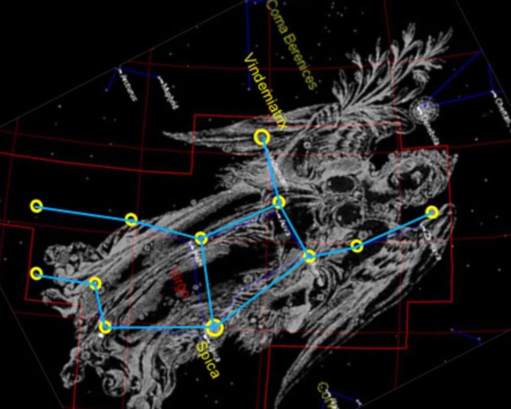 Duemila anni fa, a causa della precessione degli equinozi, di cui parleremo in un prossimo articolo, la Vergine precedeva il sorgere del Sole nel mese di settembre ed era quindi associata alla vendemmia: per questo la stella Virginis venne chiamata Vindemiatrix.