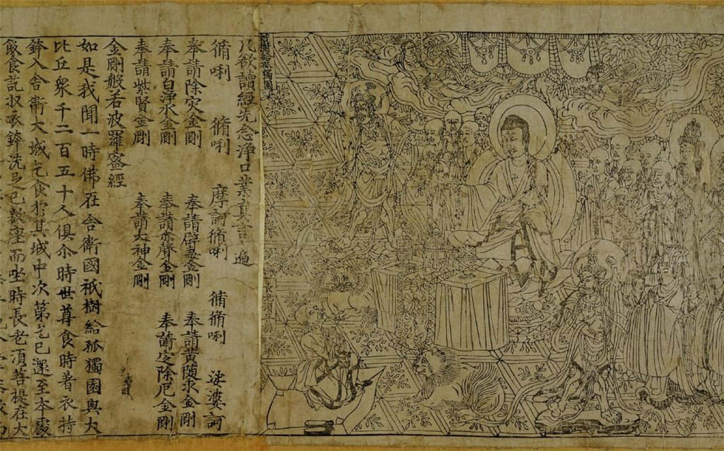 Il più antico libro stampato vero e proprio di cui si abbia notizia è una traduzione cinese del Sutra del Diamante , un’opera buddhista; è un rotolo di sei fogli di carta lungo più di cinque metri. La data di realizzazione è (secondo il nostro calendario) l’848 d.C.