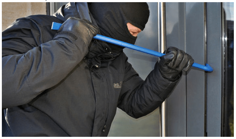 Come si usa il piede di porco? Ecco una foto di un malfattore al lavoro: lo si inserisce tra battente e porta, e poi si fa leva con il lungo manico. Il piede di porco aumenta di molto la forza esercitata dallo scassinatore, e la porta si apre!