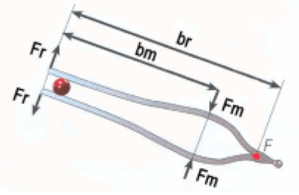 Vedete? Ho un’asta che si appoggia sul fulcro F. La forza Fr, detta resistenza, è quella che devo vincere per scassinare la porta; la forza Fm, detta impropriamente potenza, è la forza motrice che sviluppa lo scassinatore.