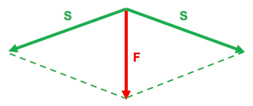 Eccoci di nuovo in una situazione simile a quella del piano inclinato: abbiamo una forza F, quella con cui picchiamo sul cuneo, che agisce verso il basso, ed altre due forze S, un poco inclinate rispetto all’orizzontale e perpendicolari alla superficie di contatto cuneo-legno: quelle che spaccano la legna. Come si può calcolare l’intensità di queste forze?