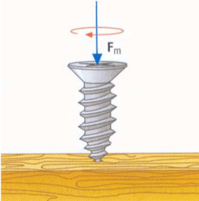 Anzitutto, la vite funziona a questo modo: con il cacciavite la facciamo girare, vincendo una resistenza. Il risultato del nostro girare è che la vite sviluppa una forza, grazie alla quale, come nel caso della figura, penetriamo nel legno, oppure serriamo due pezzi tra di loro. Ma su quale principio funziona la vite?