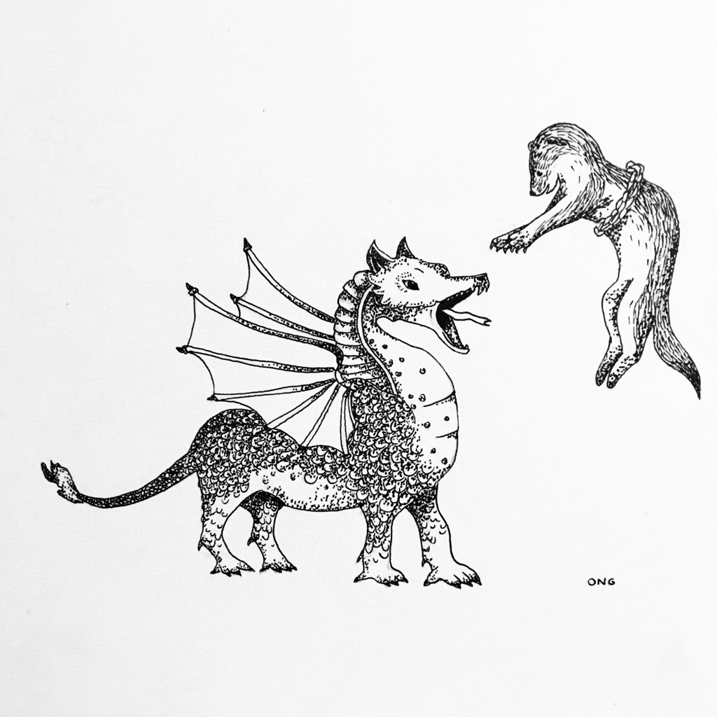 Per farla corta: il Drago si affrettò ad allontanarsi, e l’ermellino lo seguì senza dargli tregua, fino alle fredde terre di Lapponia. Là giunto il Drago, non abituato al gelo e alle privazioni, si pugnalò al cuore con i suoi stessi artigli velenosi, e morì fra alte grida di dolore.