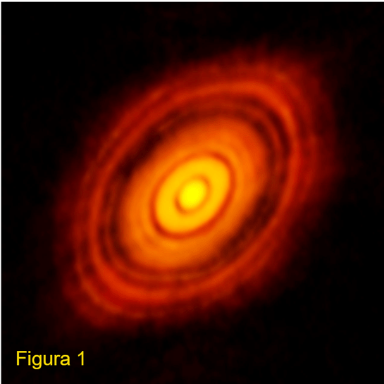 Esplorando l’Universo, abbiamo potuto vedere oltre un migliaio di sistemi planetari, in tutti gli stadi della loro formazione. La figura 1 mostra il disco protoplanetario che circonda la protostella HL Tauri, ripreso dal radiointerferometro ALMA. Il disco protoplanetario è composto da anelli di materiale e da solchi scavati dai pianeti in fase di formazione, che hanno acquisito materiale dal disco “ripulendolo” attorno a quella che sarà l’orbita finale. L’immagine mostra come i pianeti inizino a formarsi insieme alla stella o poco dopo.
