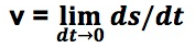 dove dtindica un intervallo di tempo prossimo a zero, e dsè il corrispondente spazio percorso, a partire dal punto P in cui misuriamo la velocità. La formula si legge: la velocità vè il limite del rapporto dsdiviso dt, quando dttende a zero.