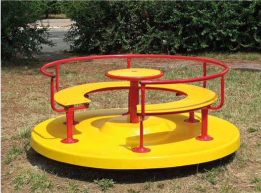 Facciamo un rapido calcolo. Il girello ha (circa) il diametro di 2 m, quindi R = 1 m; la circonferenza è 2 ∙ 3,14 ∙ 1 = 6,28 m. Se fate un giro in 2 s, abbiamo una velocità v di: v = s / t = 6,28 / 2 = 3,14 m/s. Allora, l’accelerazione vale: a = v2/R = (3,14)2/ 1 = circa a 10 m/s2: è quasi 1 g, l’accelerazione di gravità! In altre parole, a questa velocità la forza centripeta è uguale al vostro peso! Ecco perché è bene che non saliate: potete rompere tutto!
