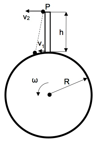 Se (poiché) la Terra gira sul suo asse (per essere precisi, rispetto alle stelle), il corpo P, sulla torre, ha una velocità v2, che dipende dalla sua distanza dall’asse della Terra, che è uguale a: R + h. Difatti, la Terra gira sul suo asse con la velocità ω, pari a 1 giro ogni 24 ore; quindi, la velocità v2 vale: v2 = ω (R + h). Per il principio d’inerzia, il corpo P procede con la sua velocità v2 sino a quando tocca il suolo. Chiaro?