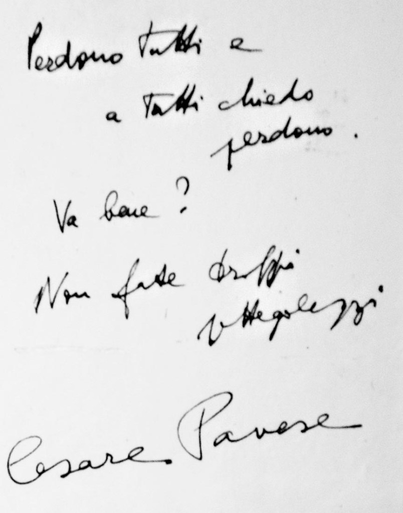 Aveva scritto in maniera febbrile per tutta la vita e dalla vita prendeva commiato congedandosi dalla scrittura. C’era un biglietto tra le pagine dei Dialoghi con Leucò:
