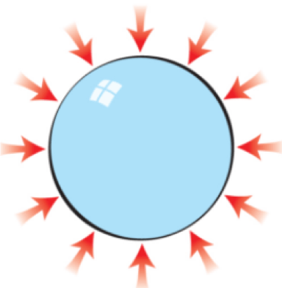 Abbiamo già detto che l’atmosfera è un fluido, come l’acqua: quindi, sopra al palloncino, od alla bolla di gas, c’è una colonna di liquido che lo schiaccia: ma allora, perché la forma è sferica?