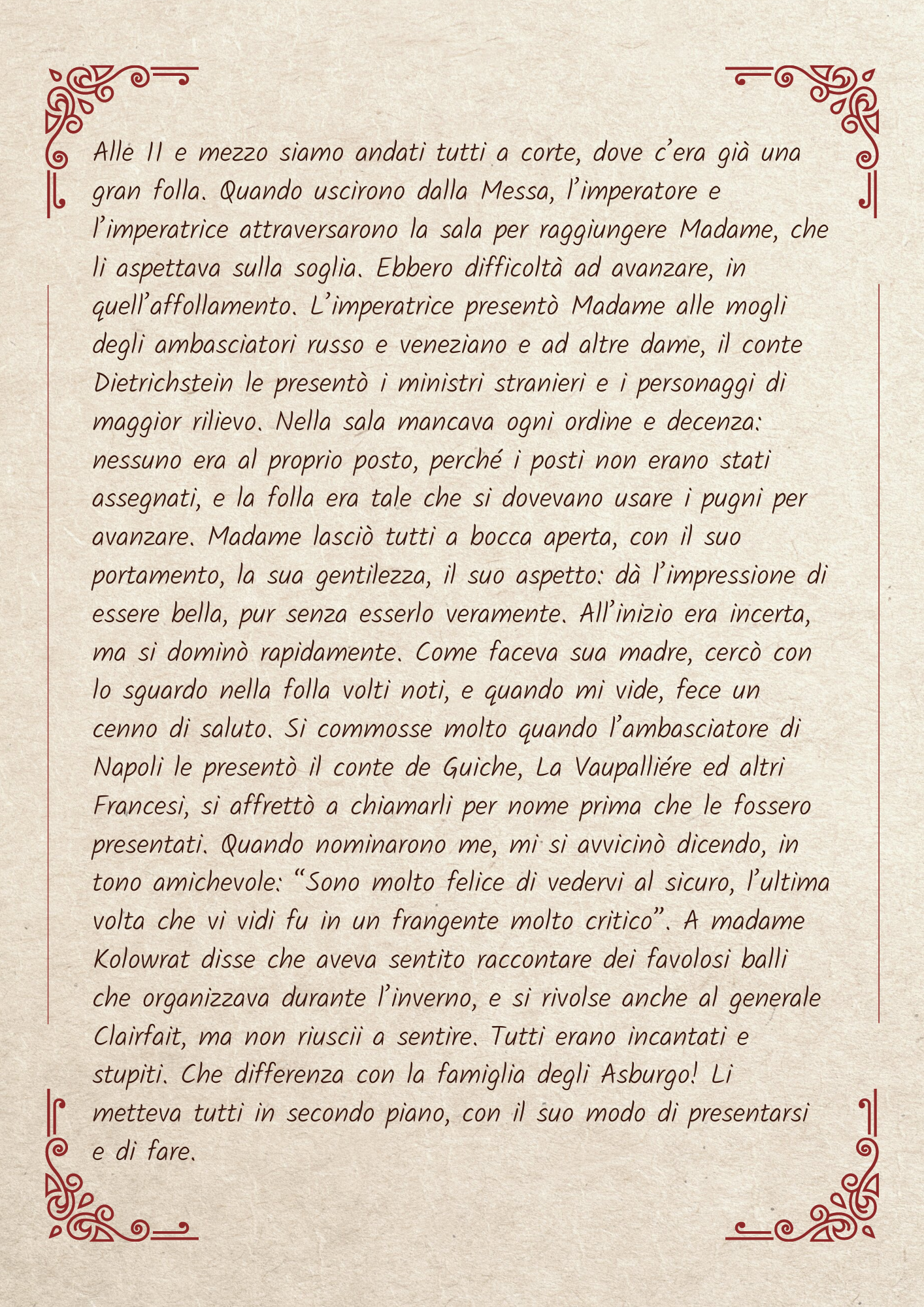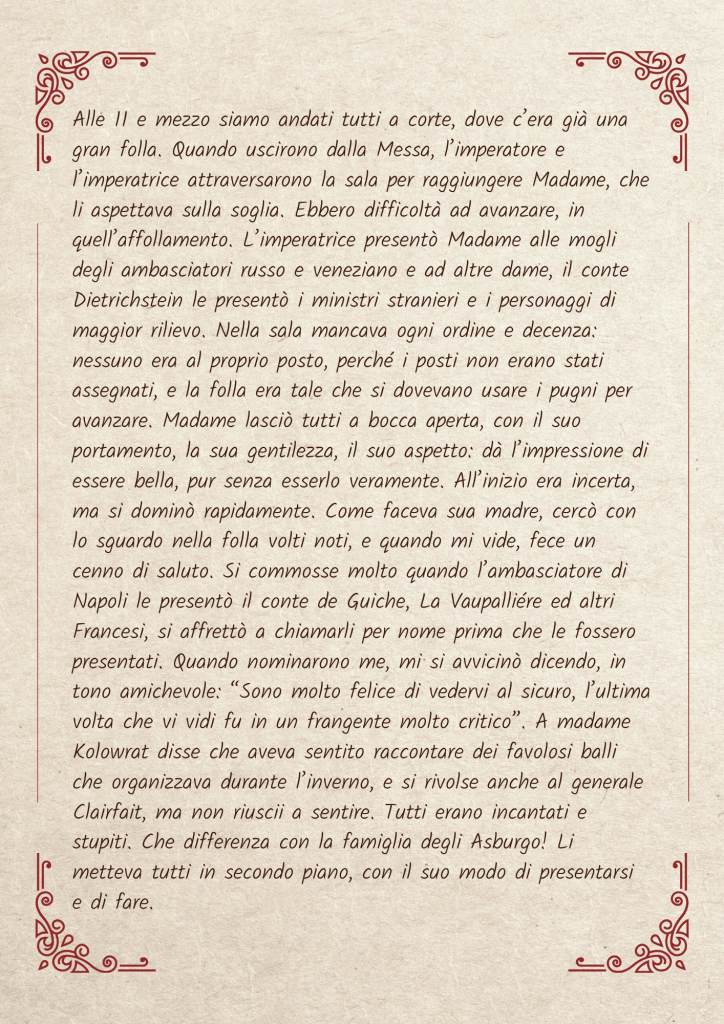 Quando Madame Royale, la prima figlia di Maria Antonietta e di Luigi XVI, arrivò a Vienna, ospite del cugino, imperatore d’Austria, nessuno poteva immaginare cos’era diventata quell’adolescente privata della libertà, di tutti i parenti e di qualunque compagnia adatta alla sua età.