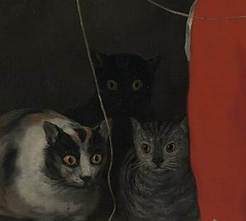 I simboli legati al decesso del bambino sono da ricercarsi prima di tutto nei gatti rappresentati al suo fianco; ad un primo sguardo se ne vedono solo due, bisogna prestare molta attenzione e osservare il dipinto da vicino per rendersi conto che, in effetti, i gatti sono tre, uno è nero e si vedono solo gli occhi.