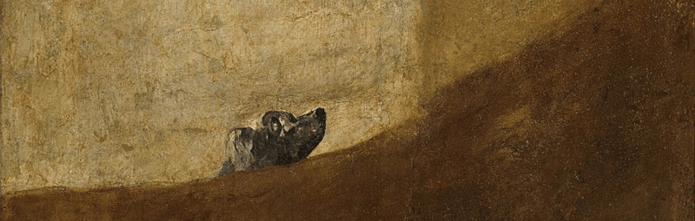 Le interpretazioni sono molteplici e non aiutano molto nel decodificare il messaggio nascosto. Per qualcuno rappresenta un cane in una fossa, che sta facendo di tutto per uscire e mettersi in salvo, mentre per altri è un cane che osserva un punto verso l’infinito. Credo che non abbia di per sé un valore di rappresentazione oggettiva ma sia un’opera altamente simbolica, che dovrebbe trasmetterci un pensiero o una visione di Francisco Goya.