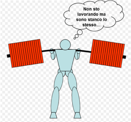 Ora, invece, sto trasportando una valigia: lavoro zero? Come vi ho anticipato, c’è lavoro, ma non quello che si può pensare. Buona parte della fatica che facciamo proviene dal fatto che dobbiamo contrarre i muscoli per contrastare il peso della valigia: lavoro zero! E poi, c’è dell’altro? Si: ecco di cosa si tratta.