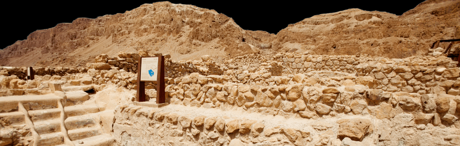Evidenti riscontri storici hanno invece le rovine di un insediamento, poco lontano da Gerico, identificato come quello di Qumran, databili tra il II secolo a.C. e il I secolo d.C., quando fu distrutto dalla X Legione Fretensis romana. Si tratta del sito dove si ritiene vivesse un gruppo di ebrei aderenti alla corrente religiosa degli Esseni. All’apparenza è un sito archeologico non diverso da molti altri di quelle terre. Tuttavia, se si accostano i ritrovamenti sul terreno con quelli degli scritti rinvenuti nelle grotte tutt’attorno a partire dal 1947 fino ai nostri giorni[2], allora emerge l’eco di una comunità specifica, chiusa, con regole sue, suoi riti e modi di vivere, talvolta divergenti dalla corrente principale del Giudaismo dell’epoca.