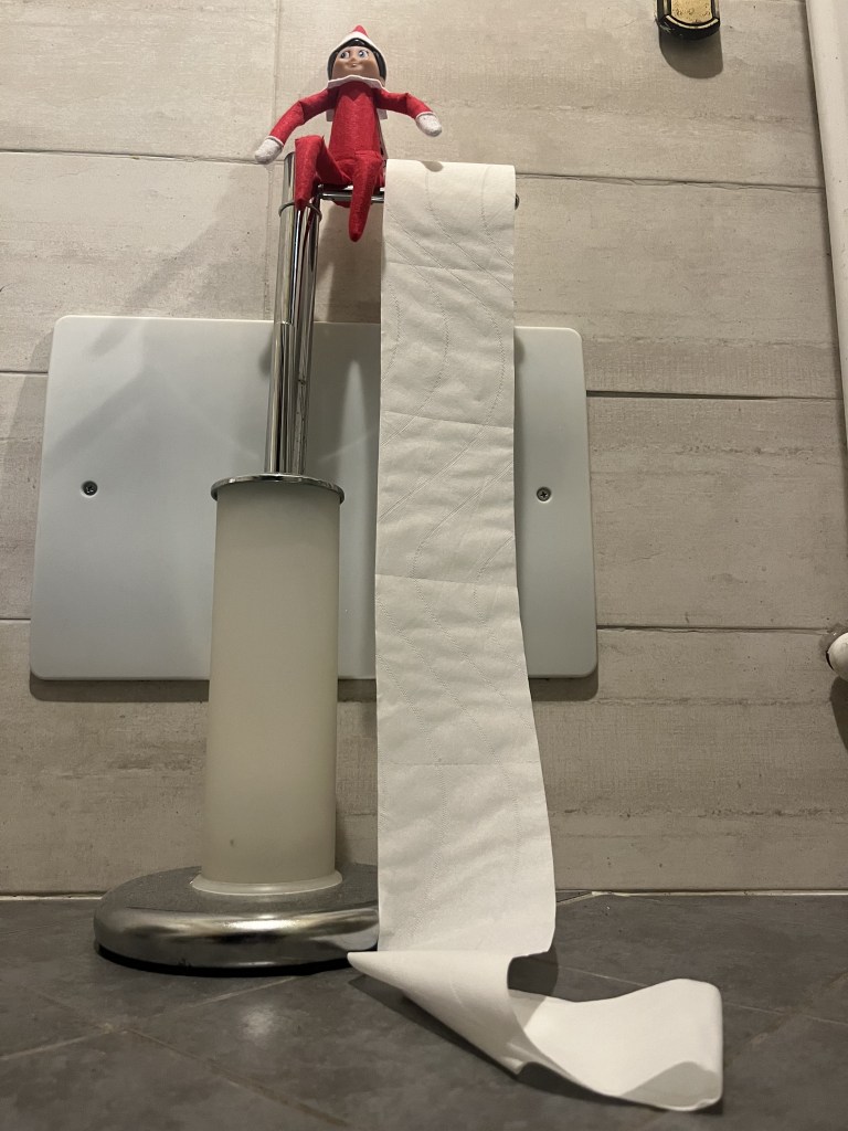 Questa notte mi sono ricordato della montagna fatta con quei rotoli strani che si trovano in bagno. Ho avuto un’idea geniale. Forse non era neve… e ho pensato: Ma certo!!! Sono dei rotoli per impacchettare i regali.