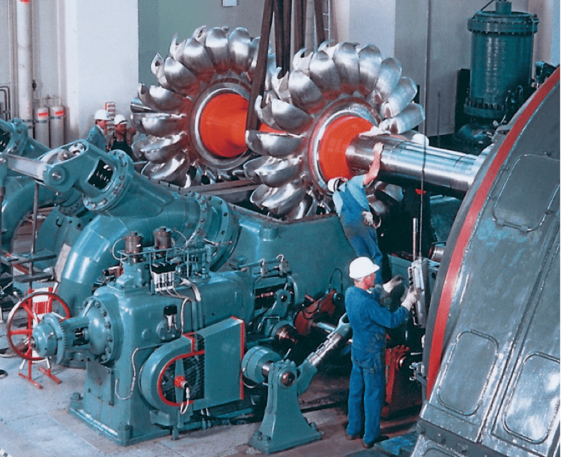Prima di concludere, solo una occhiata alla turbina. Ci sono diversi tipi di turbine; su un salto di 500 m, si usa una turbina Pelton. Eccone due coassiali.