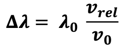 Poiché la velocità di propagazione delle onde elettromagnetiche è pari alla velocità della luce c, la variazione della lunghezza d’onda sarà in questo caso Δl = l0 vrel/c. Questa è una formula approssimata: se la velocità vrel fosse confrontabile con quella della luce bisognerebbe considerare gli effetti relativistici del fenomeno.